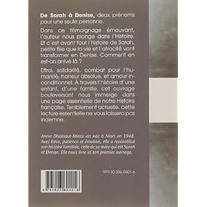 De Sarah à Denise, deux prénoms pour une seule personne. Dans ce témoignage émouvant, l'auteur nous plonge dans l'Histoire. Et c'est avant tout l'histoire de Sarah, petite fille que la vie et l'atrocité vont transformer en Denise. Comment en est...